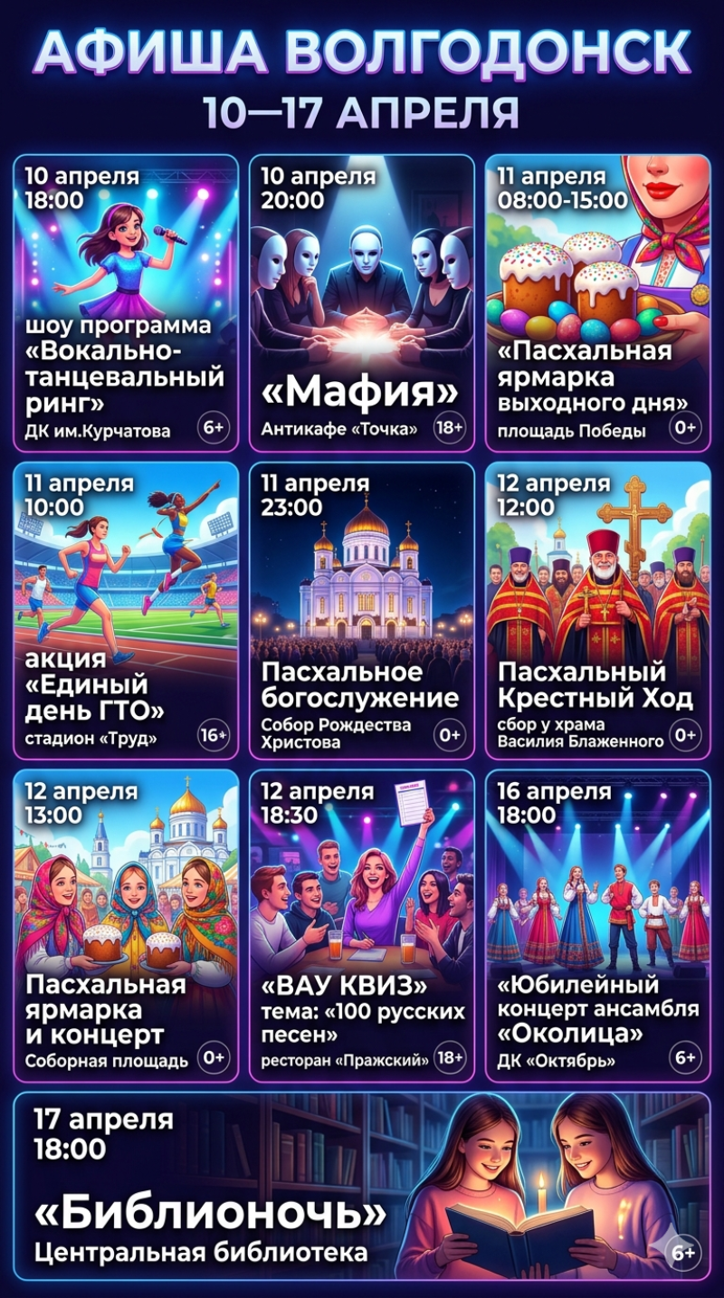 Куда сходить в Волгодонске с 10 по 17 апреля?