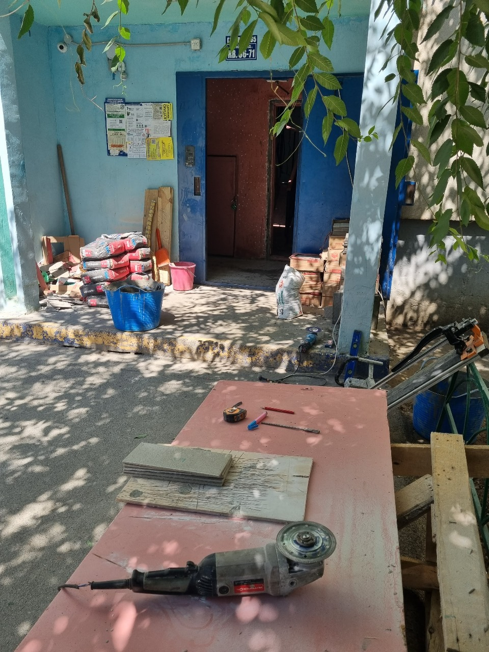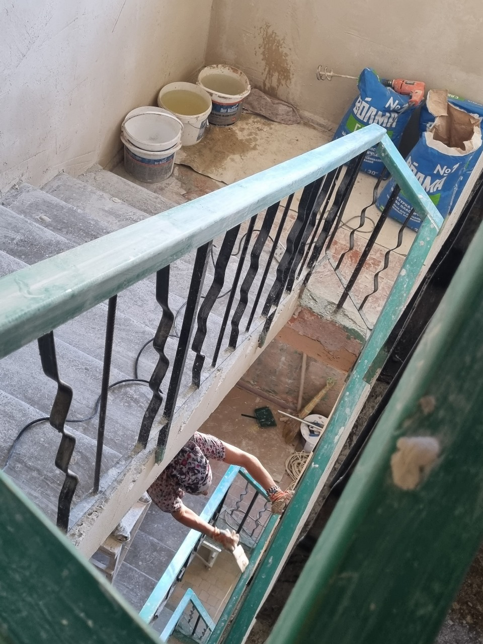 На десятке домов «Уюта», пока жильцы на работе, слышен активный шум. Где-то плитка кладётся в местах общего пользования внутри домов (Гагарина, 65), а где-то, этаж за этажом, стамеской, отбивается старое покрытие краски в преддверии обновления облика всего подъезда (Гагарина, 73, Строителей, 11А и другие).