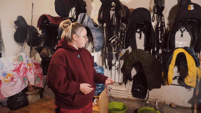 - У каждого подопечного - свой уздечка, свое седло покер, - показывает инструктор. Хранится это все в отдельном теплом помещении. смотрите, каждая - подписана. У каждой лошади свой размер, все очень индивидуально. Если сравнивать - это как у людей одежда у каждого своя, так и у лошадок.