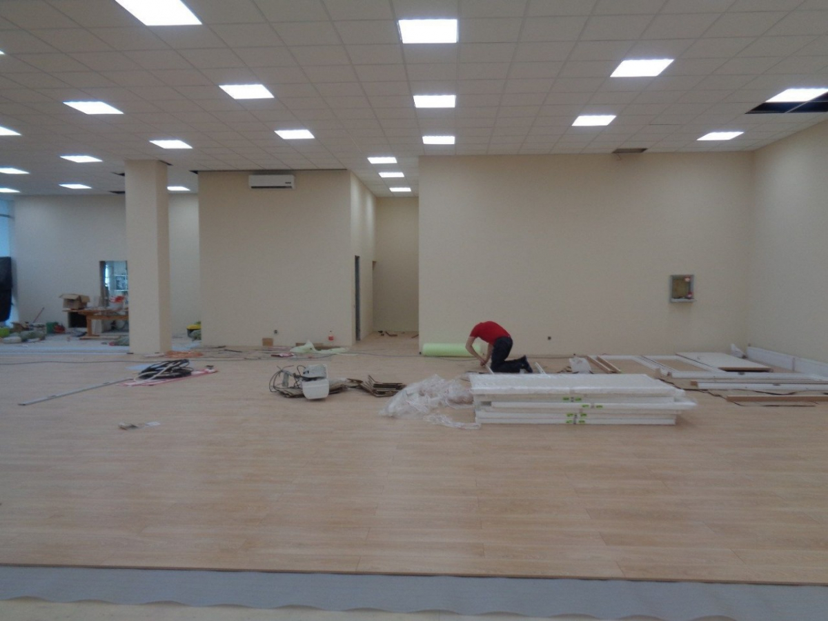 Отделочные работы: штукатурка, шпатлевка, поклейка обоев, покраска потолков, полов и стен, укладка линолеума, ламината и плитки.