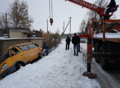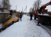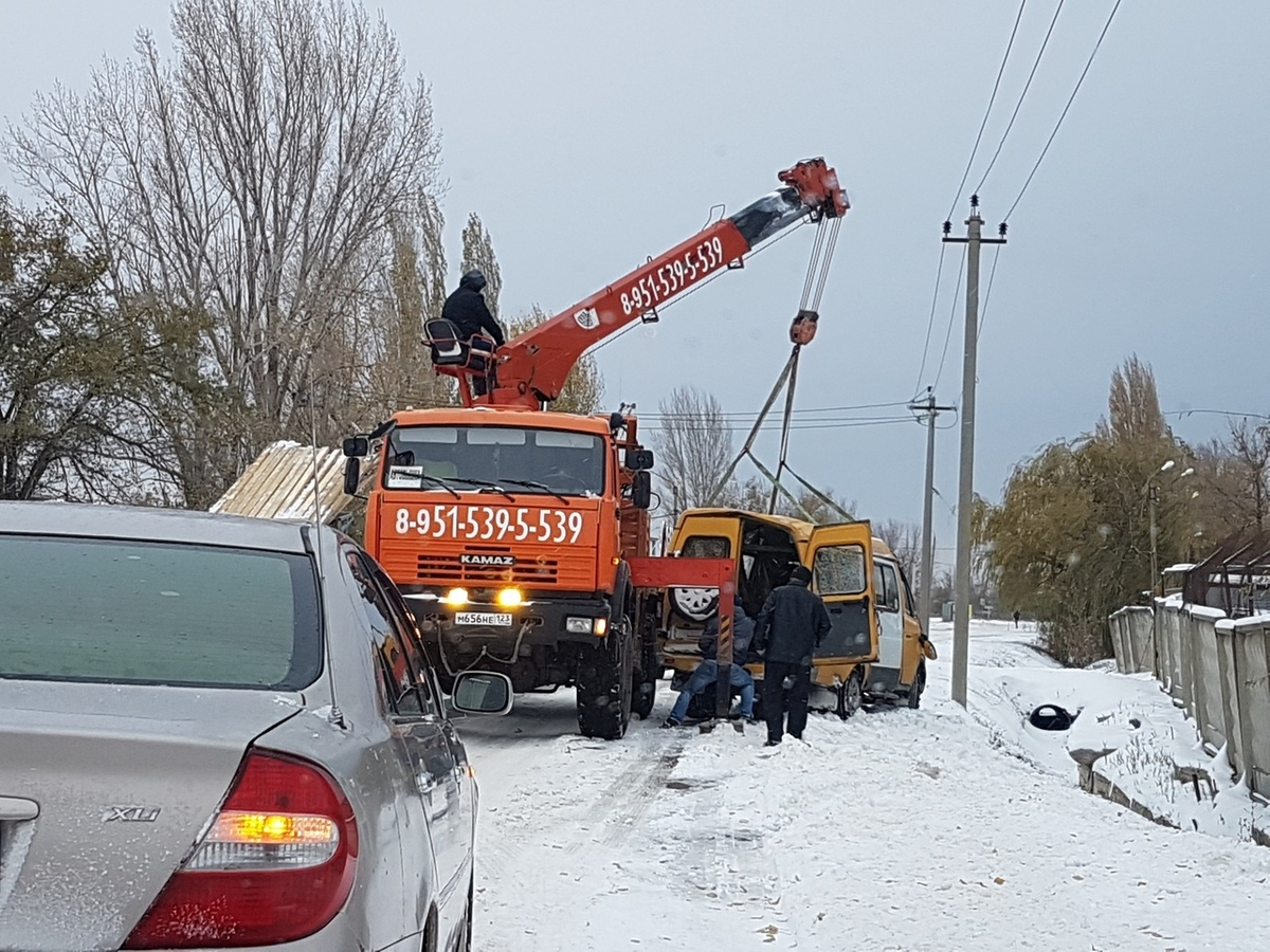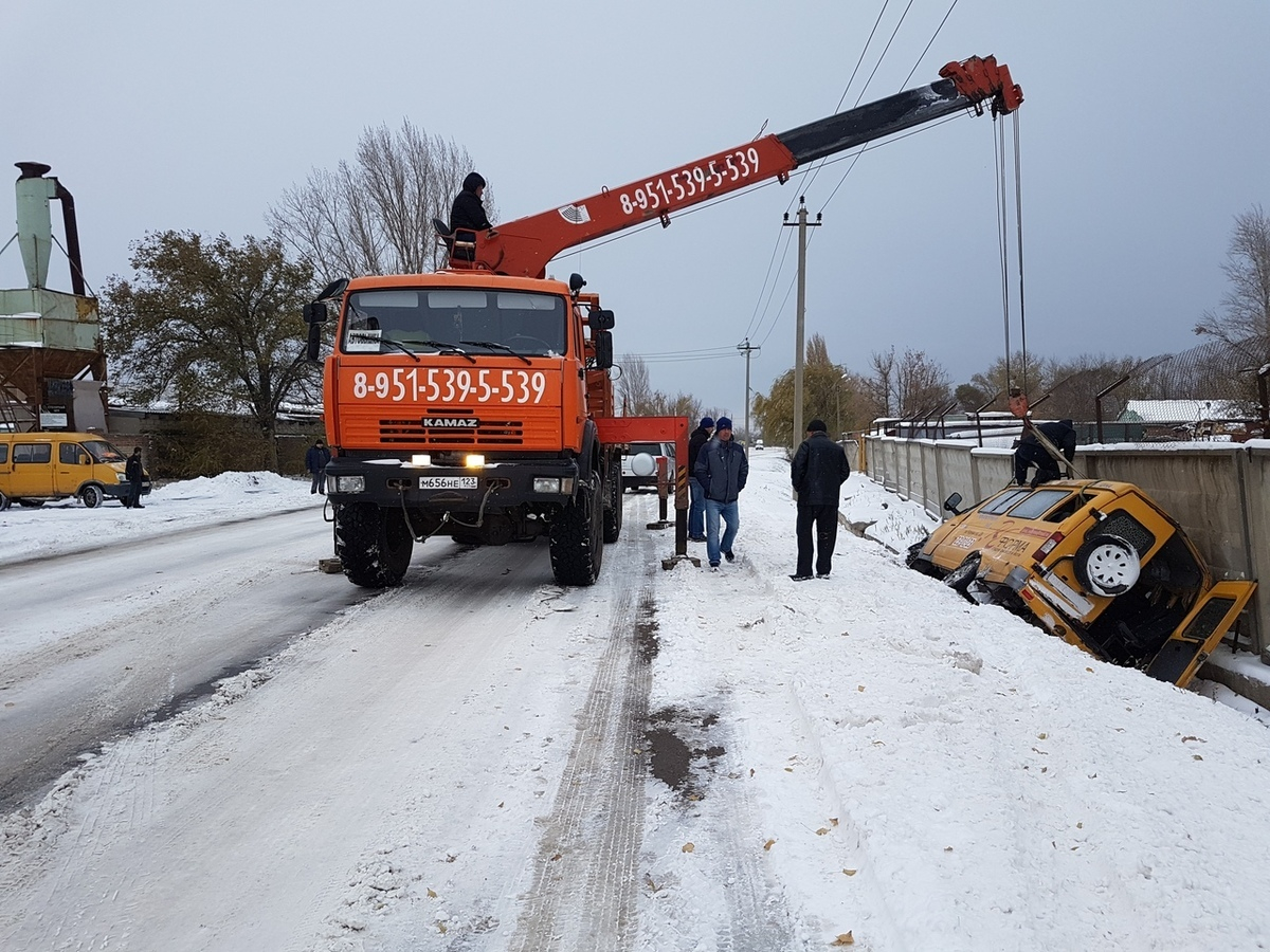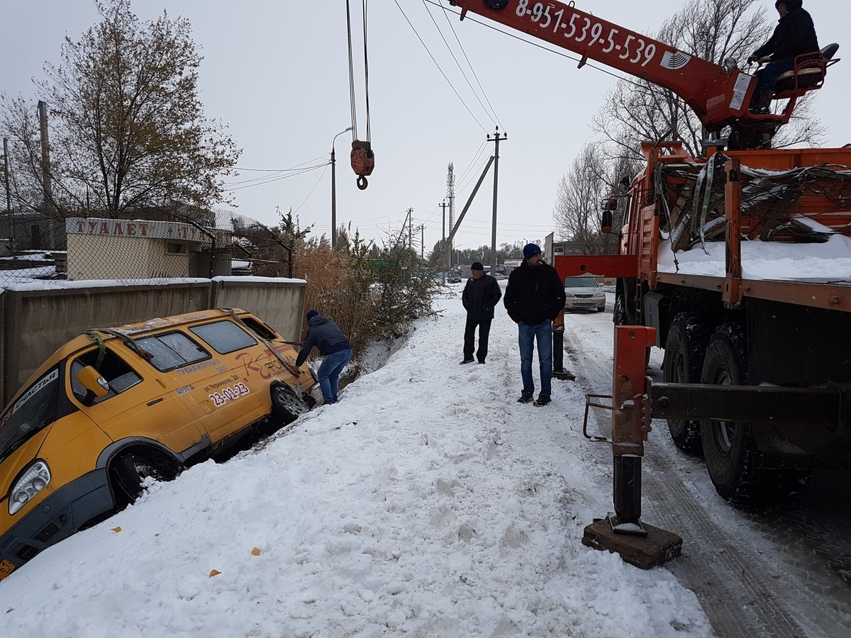 Маршрутное такси слетело с заснеженной дороги в ливневую яму в Волгодонске