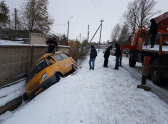 Водитель маршрутного такси №25 слетел с дороги в ливневую яму.