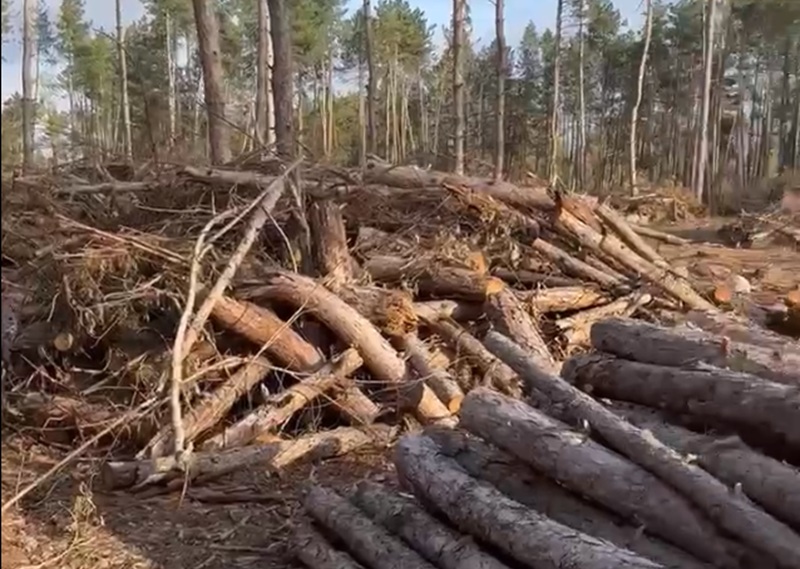 Массовую вырубку деревьев в заповедном сосновом лесу зафиксировали у поселка Дубравный местные жители