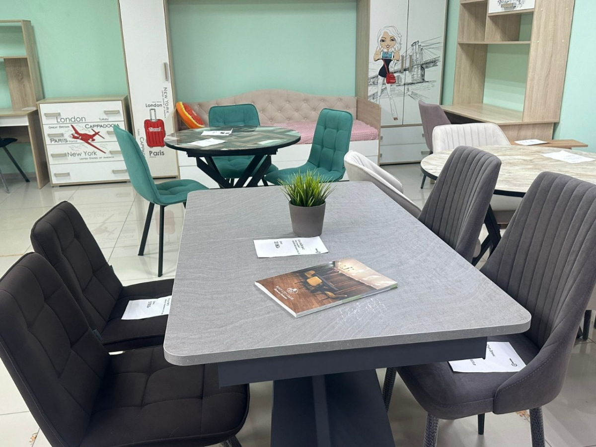 В наличии и под заказ компактные кухонные гарнитуры, столовые группы и мягкие стулья, столы с дизайнерскими столешницами.