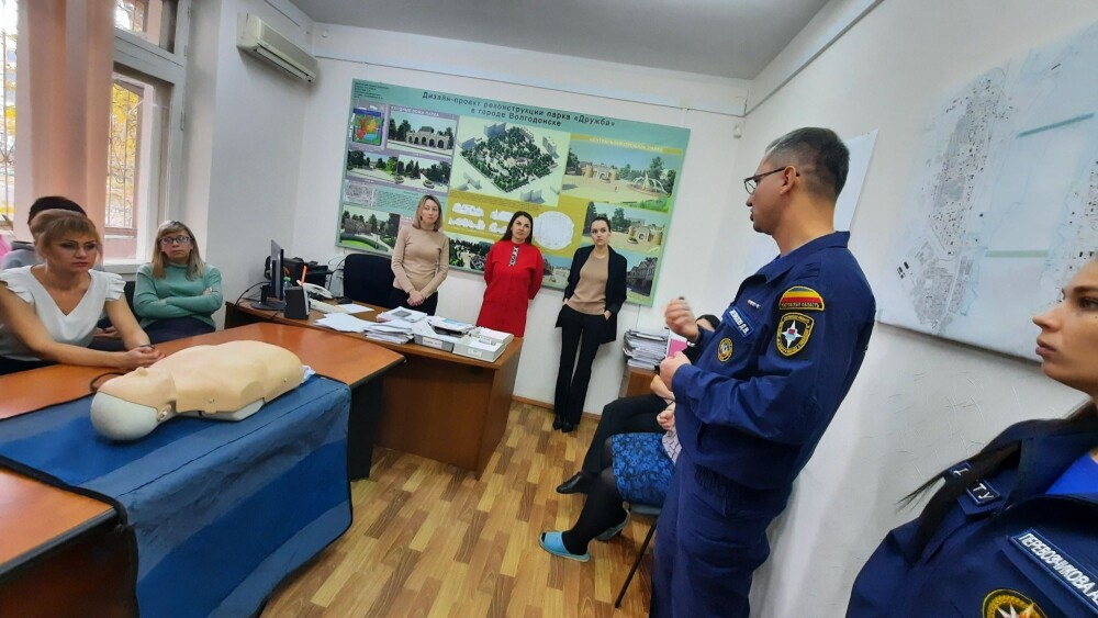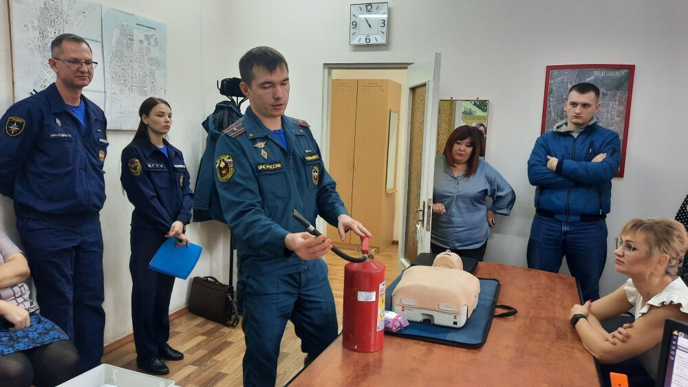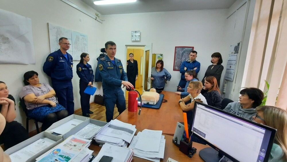 Работникам городских учреждений провели профилактические занятия по пожарной безопасности, а также провели инструктаж по алгоритму действий во время чрезвычайных ситуаций.
