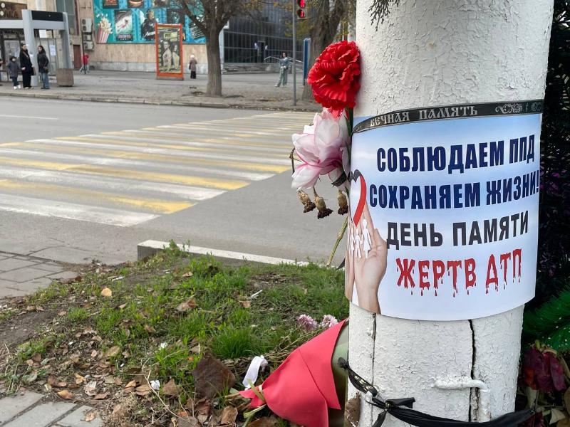 У того самого пешеходного перехода, где в один миг оборвались две юные жизни Анастасии и Ольги прошла акция памяти жертв дорожно-транспортных происшествий.
