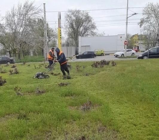 20 апреля работы стартовали вдоль ключевых магистралей: на ул. Морской и проспекте Строителей. С травой здесь борются две подрядные организации.