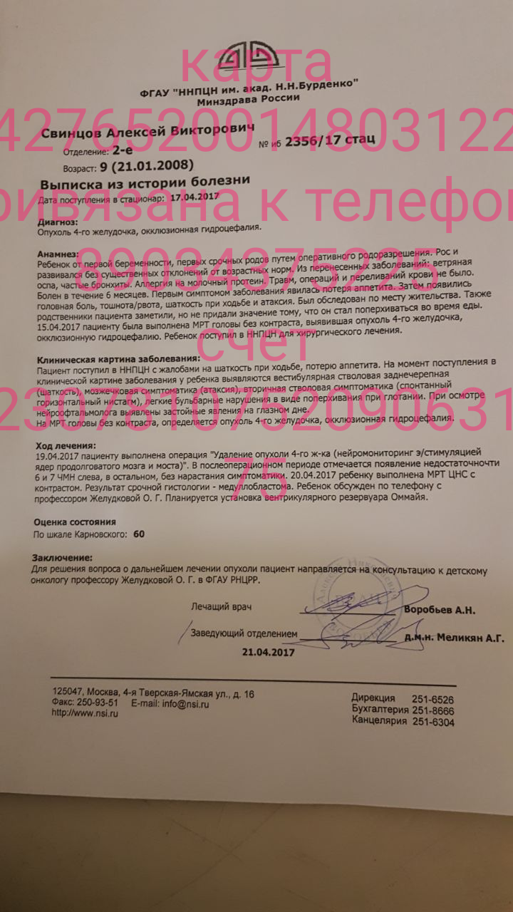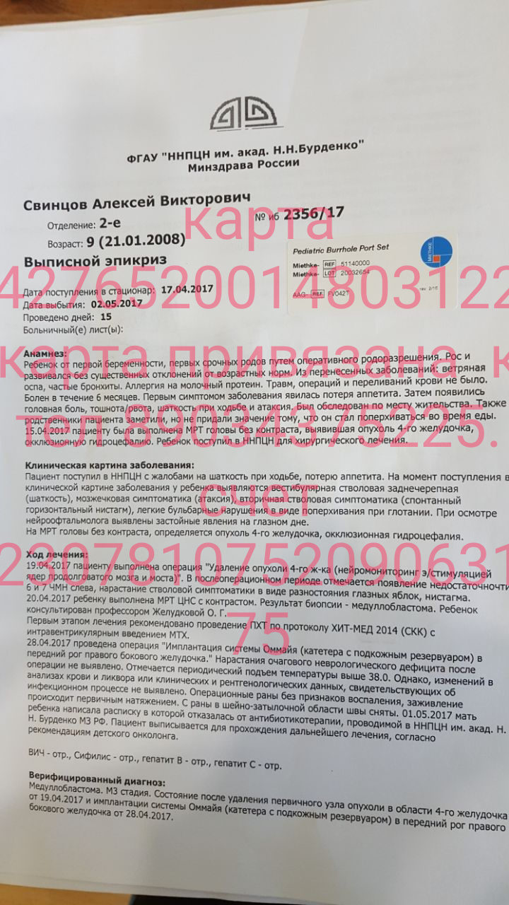Уже потрачено около 10 миллионов рублей. Родители мальчика продали всю имеющуюся недвижимость и машину, взяли несколько кредитов. Сначала никто вообще не знал об этой трагедии, они пытались все держать в себе. Но теперь, когда они все таки рассказали о случившемся, мы всем городом пытаемся помочь их горю, - продолжила близкий друг семьи.