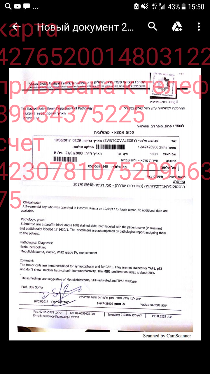 После операции в Москве ребенка направили в Израиль для того, чтобы сделать четыре пересадки костного мозга. Эта операция гарантирует ребенку полное выздоровление и поможет сохранить все функции организма.