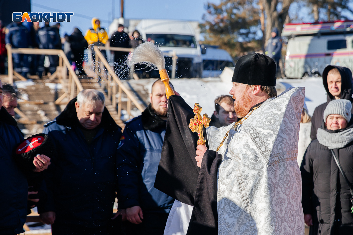 Кульминацией дня стал чин освящения воды, который провел отец Георгий Андреев ровно в полдень. Именно в этот момент, по словам очевидцев, количество желающих окунуться в купель достигло своего пика. Отец Георгий, окропляя воду святой водой, пожелал всем здоровья, мира и благополучия.