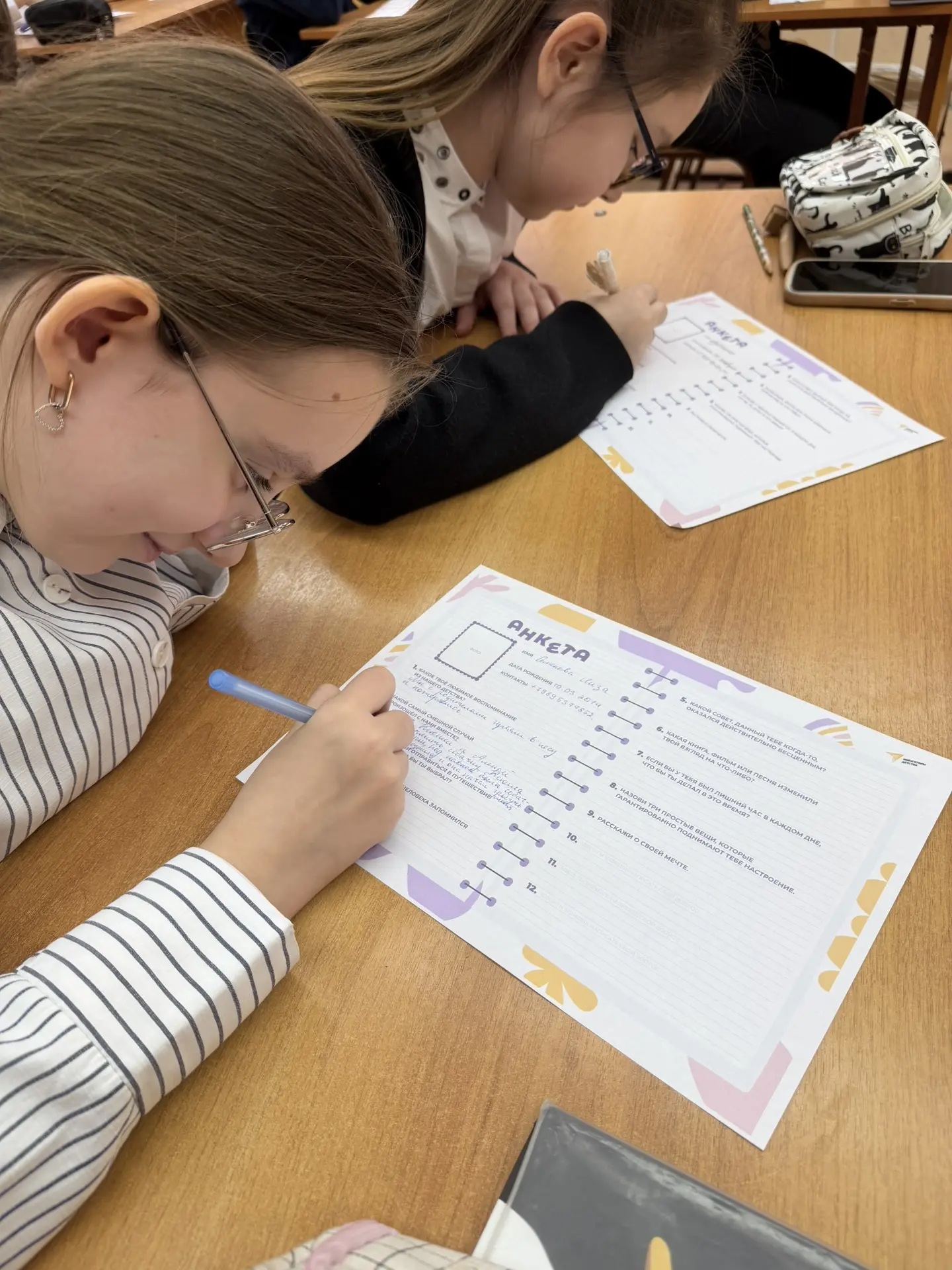 Ребята задавали вопросы одноклассникам, делились личными историями и заново открывали друг друга. Это было время, полное смеха и новых знакомств! В завершение все обменялись готовыми анкетами, добавив еще больше радости и позитивных эмоций. Таким образом, ребята из школы №5 на личном опыте узнали о значении Всемирного Дня без интернета!