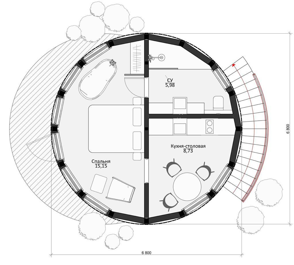 Помимо прочности и долговечности, круглые дома обладают возможностью круглогодичного проживания с индивидуальным расположением сантехники, электрики и отопления. А привлекательный внешний вид проекта позволяет зарабатывать владельцам загородных клубов, ведь снимками с такого необычного места люди будут делиться в своих социальных сетях, создавая базе отдыха дополнительную бесплатную рекламу.