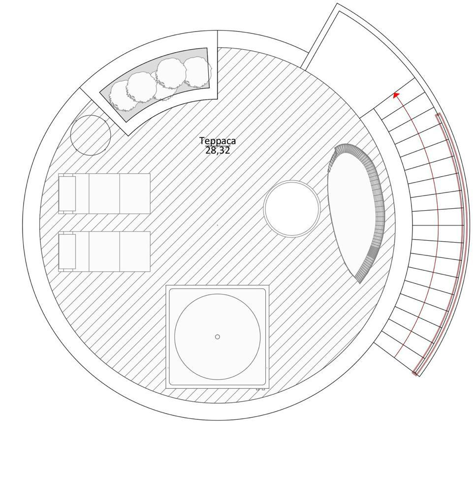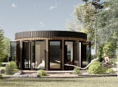 На эксплуатируемой кровле «Round House» есть возможность расположить шезлонги и купель. Отдельная душевая кабина и кухня в одноэтажном проекте с площадью 23,25 кв.м. и 29,86 кв.м. завершает список вещей, необходимых для комфортного проживания двоих человек. А наличие гостиной, спальной и детской комнат и нескольких санузлов в двухэтажной модели, общей площадью 60,23 кв.м., превращает строение в идеальное решение для современного дачного домика или бизнеса в сфере аренды жилья.