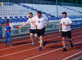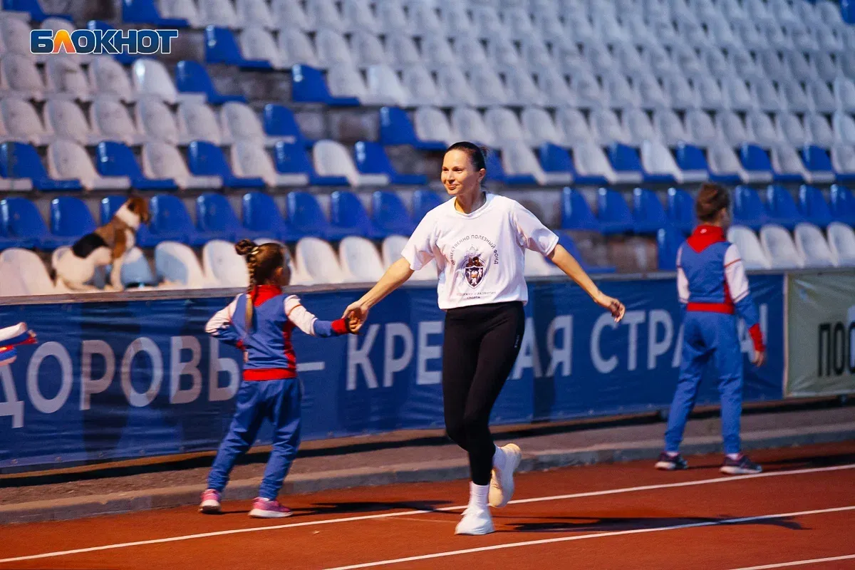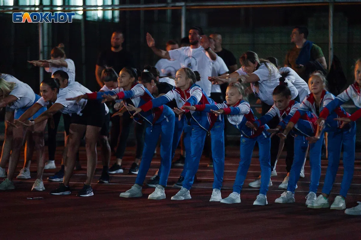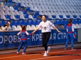 Заряд энергии перед стартом подарила великолепная разминка от инструктора Анны Григоровой, подготовив бегунов к преодолению дистанции в 2 километра (пять кругов по освещенной беговой дорожке стадиона).