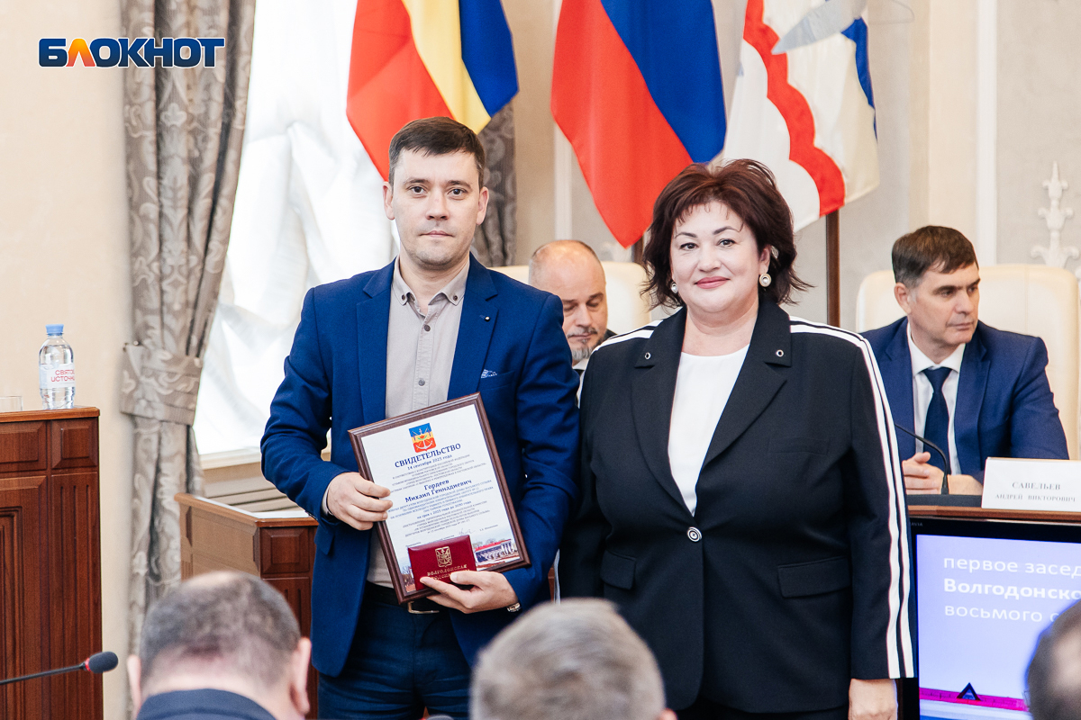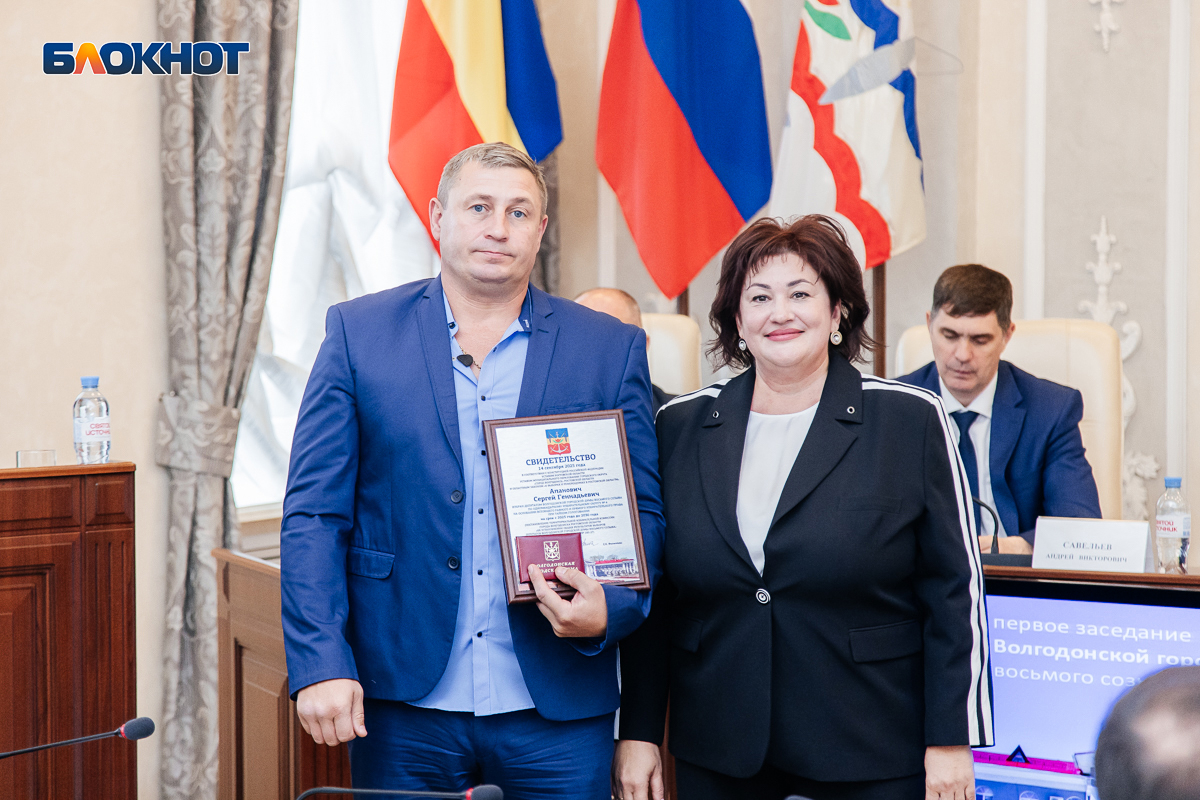 Заседание началось с того, что председатель ТИК Волгодонска Елена Филиппова объявила выборы в Думу состоявшимися, а парламентариев легитимными. Все присутствующие депутаты под аплодисменты коллег получили из рук Елены Клайдовны удостоверение народного избранника. Кстати, на первое заседание не явились четыре депутата. Пропустили встречу Андрей Гоок, Геннадий Кудрявцев, Сергей Васильченко и Александр Руденко.