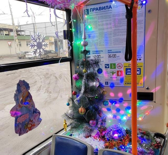 Проезд в новогоднем троллейбусе будет осуществляться бесплатно.Ранее общественный транспорт Волгодонска начали украшать к Новому году.