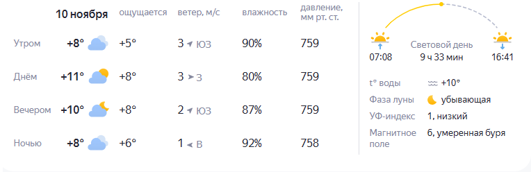В понедельник, 10 ноября, синоптики обещают облачную погоду.