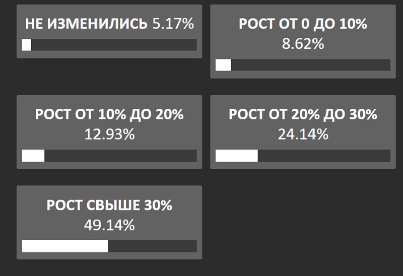 Вопрос звучал так «Как сильно выросли ваши платежи за отопление за январь по сравнению с декабрем?». Ответы распределись следующим образом. О росте свыше 30% заявили 49,15% опрошенных волгодонцев. Для 24,14% участников опроса рост составил от 20% до 30%. О росте стоимости отопления и горячего водоснабжения от 10% до 20% сообщили 12,93% принявших участие в опросе читателей «Блокнота».