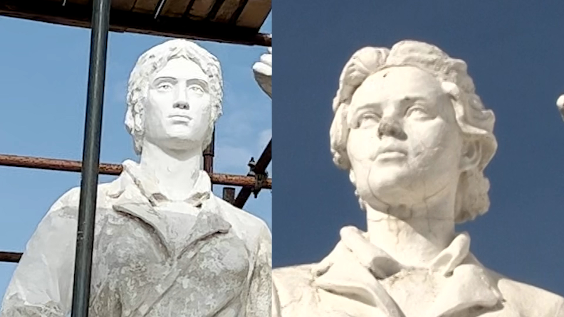 «Одна смотрит в борщ, другая – в мечту»: скульптор оценил реставрацию фигуры на обелиске строителям Волго-Дона