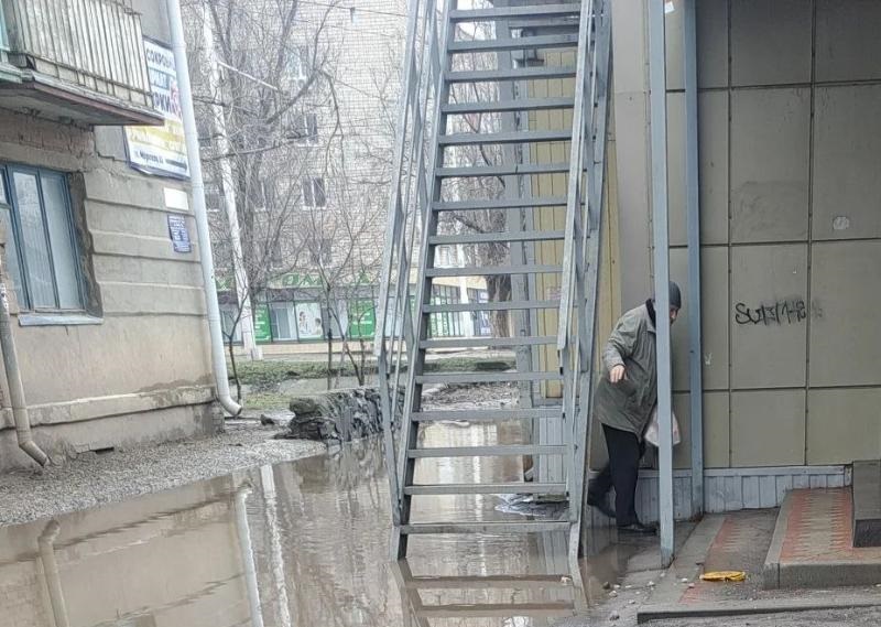 Торцевая часть «Гиалса» превратилась в полосу препятствий для волгодонцев. Судя по всему, жители дома №84 по улице Морской, недалеко от всем известного «Гиалса», наслаждаются настоящим «мокрым сезоном» круглый год.