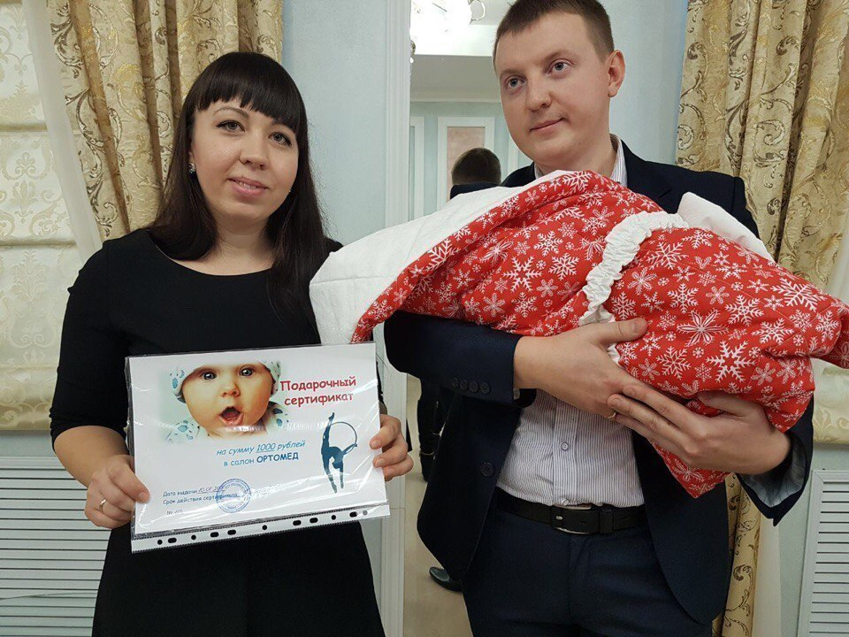 - Спасибо администрации, что ввели такую традицию, очень приятно. Отдельно хочу поблагодарить свою жену Юлю за то, что она мне сделала такой подарок на Новый Год. Это самый лучший подарок в моей жизни. Родителей хочется поблагодарить за поддержку. Со своей стороны, мы постараемся, чтобы наша дочь была самой счастливой,здоровой,красивой и доброй, пообещал новоиспеченный папа Александр Березкин.