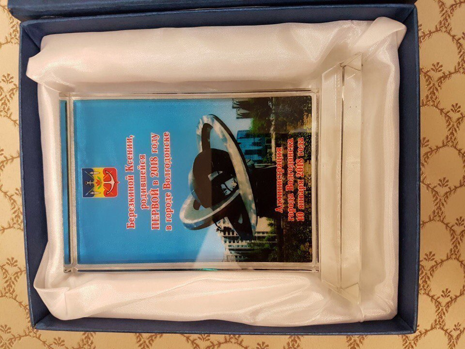 Глава администрации города торжественно вручил родителям малышки самый первый и самый важный государственный документ дочери – свидетельство о рождении, а также передал поздравление губернатора Ростовской области Василия Голубева. По уже сложившейся традиции Ксении вручили именной кристалл и денежный подарок с пожеланиями здоровья счастья и благополучия.