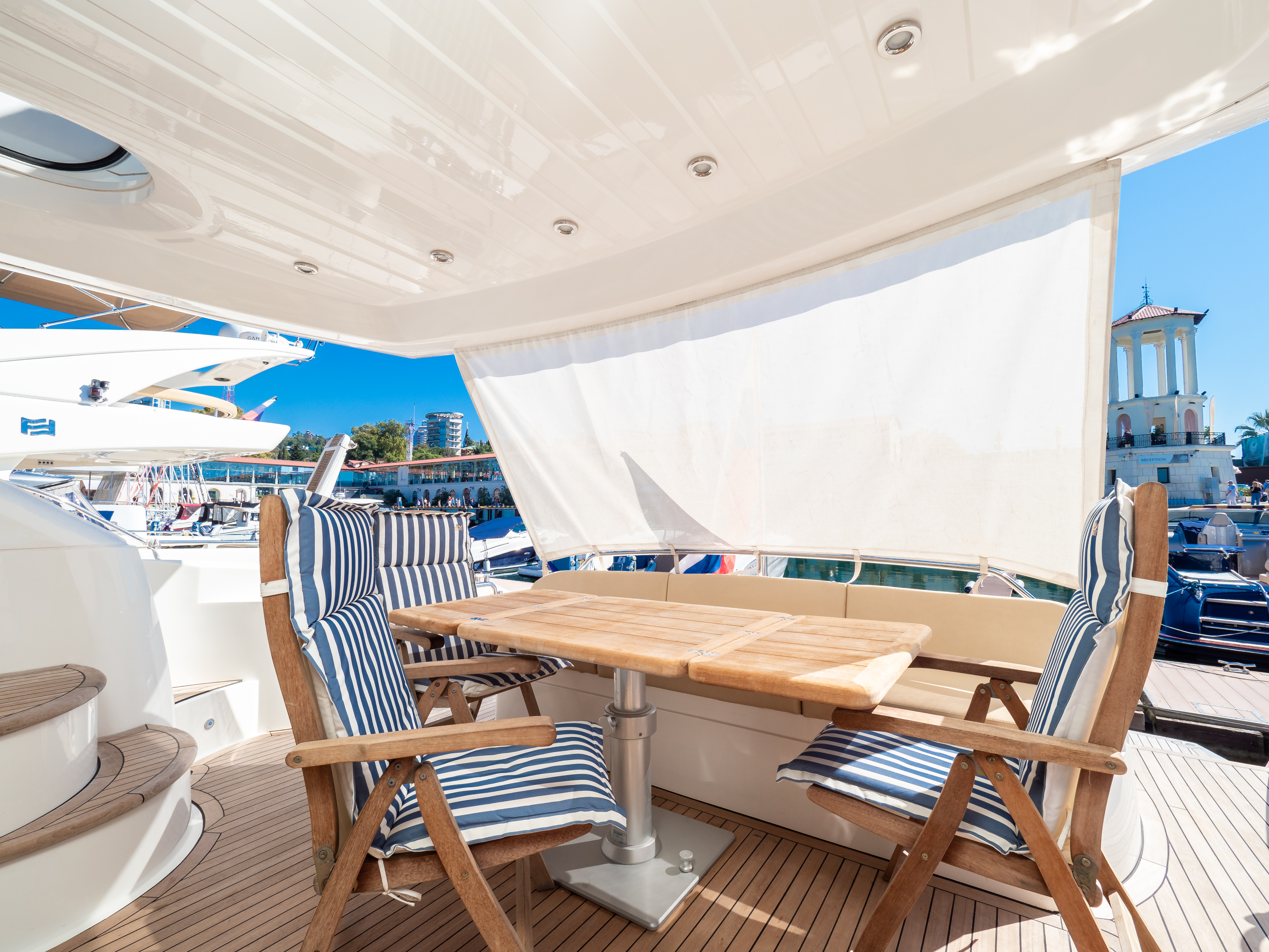 Кормовая часть судна, идеально подходит для организации вечеринок и ужинов на свежем воздухе.