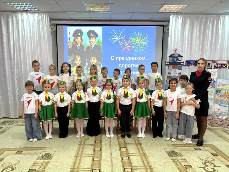 На торжество была приглашена старший инспектор по пропаганде безопасности дорожного движения, лейтенант полиции отдела Госавтоинспекции Елизавета Свинцова. Она рассказала о своей работе, подчеркнула важность сотрудников, историю создания службы и её современную роль, а также напомнила детям о правилах безопасности на дорогах.