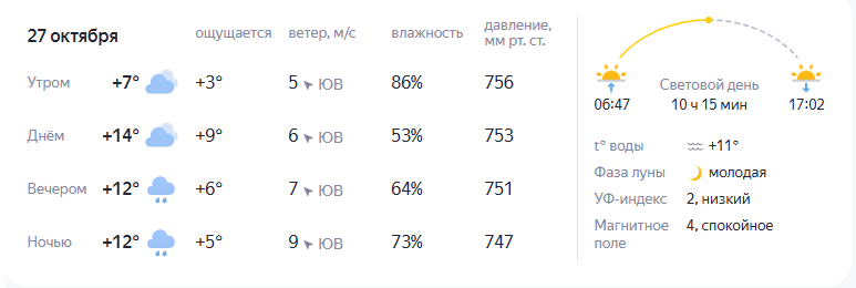 Понедельник, 27 октября, синоптики обещают пасмурную погоду.