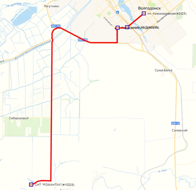 Протяженность маршрута составит 62 километра (в прямом направлении - 30,9 километров, в обратном направлении - 31,1 километров). Из Волгодонска автобус будет отправляться с остановки «Комсомольская площадь» в центре новой части города. По дороге в садоводство автобус будет делать две остановки на улице Степной. Точное расписание работы дачного автобуса будет оглашено позднее.