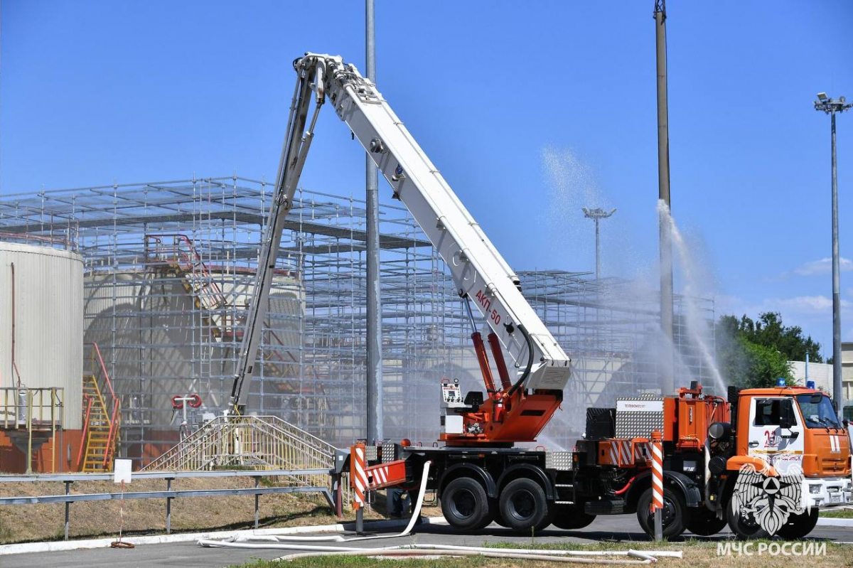 В честь 80-летия Атомной промышленности России в Волгодонске на Ростовской АЭС прошли масштабные пожарно-тактические учения, нацеленные на устранение крупного пожара, охватившего резервуары с горючей жидкостью и складское здание.