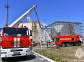 Спасатели отработали действия звеньев газодымозащитной службы, включая обнаружение и эвакуацию условного пострадавшего из задымленного складского помещения, а затем передали его медицинским работникам.