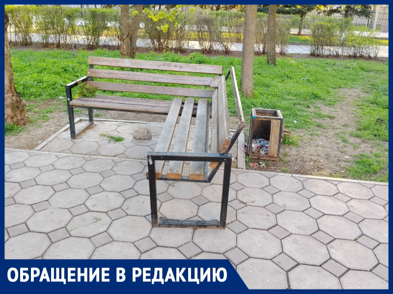 По словам горожанки, некогда благоустроенное и уютное место для прогулок сегодня напоминает зону бедствия. На фотографиях, присланных в редакцию, отчетливо видны поломанные урны, из которых мусор разносится по аллее, поврежденную брусчатку, и с корнем вырванные скамейки.