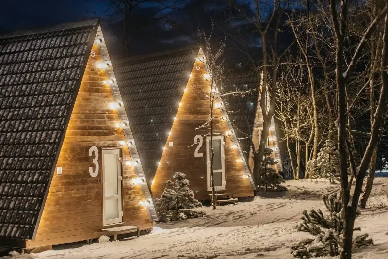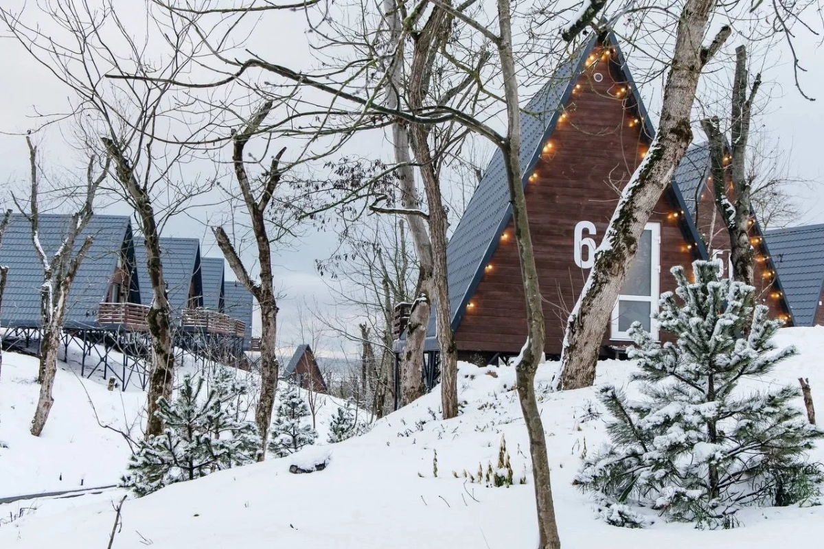 Для проживания — стильные домики А-фреймы, уютные барнхаусы или комфортные номера в отеле.