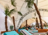 Главное удовольствие — подогреваемые парящие бассейны под открытым небом. Работают 4 сауны, две из которых с панорамным видом на море. После купания можно расслабиться в теплом шатре с мягкими лежаками и живыми тропическими пальмами.