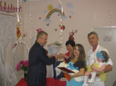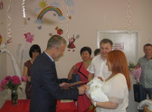 К собравшимся родственникам вышли пять мам с двумя девочками и тремя мальчиками. Как стало известно, в трех семьях новорожденные станут вторыми детьми. Малыши появились на свет в семьях Бондаренко, Громовых, Качайкиных, Пономаревых и Шматковых. Девочек назвали Дарье и Кариной, а мальчиков – Платон, Константин и Никита. Пришедший на церемонию глава администрации Волгодонска Андрей Иванов вручил счастливым родителям благодарственные письма от своего имени и от имени губернатора области.