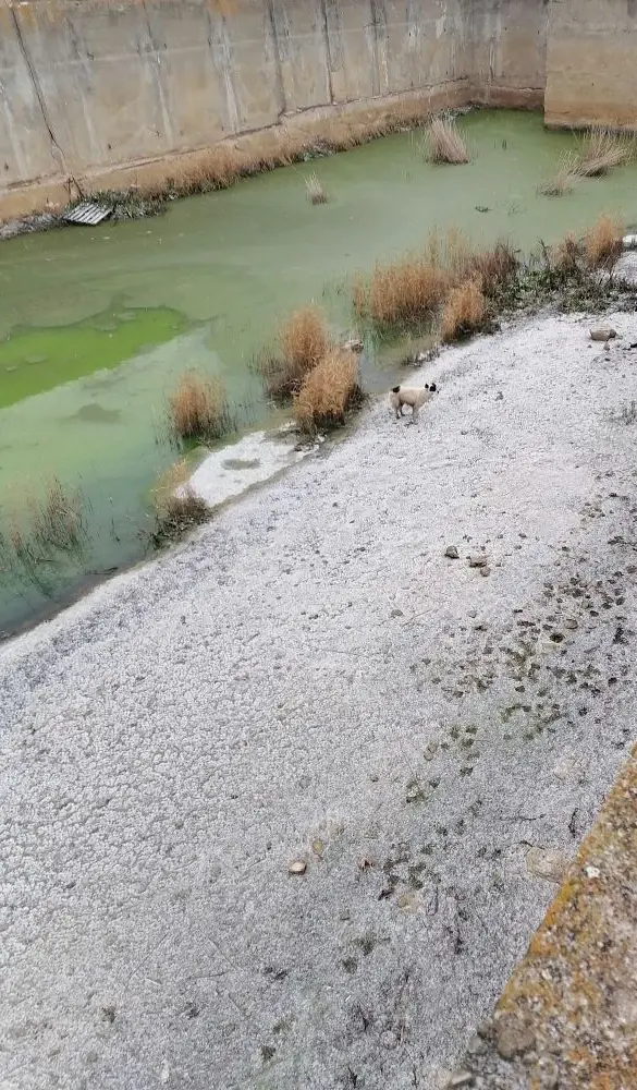 Сейчас, судя по фотографии, внутри огромного железобетонного колодца пятиметровой глубины, собака может свободно бегать. Лишь местами на дне видны нечистоты. Можно смело предположить, что как только отстойник применят по прямому назначению, участь собаки будет решена самым печальным образом.