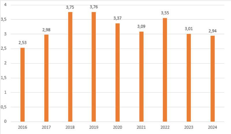 В 2024 году читатели «Блокнота» оценили образование в городе на три с минусом – 2.94 балла. За последние 8 лет это самая низкая оценка - ниже была только в 2016 году. В 2023 году оценка составила 3.05 балла.