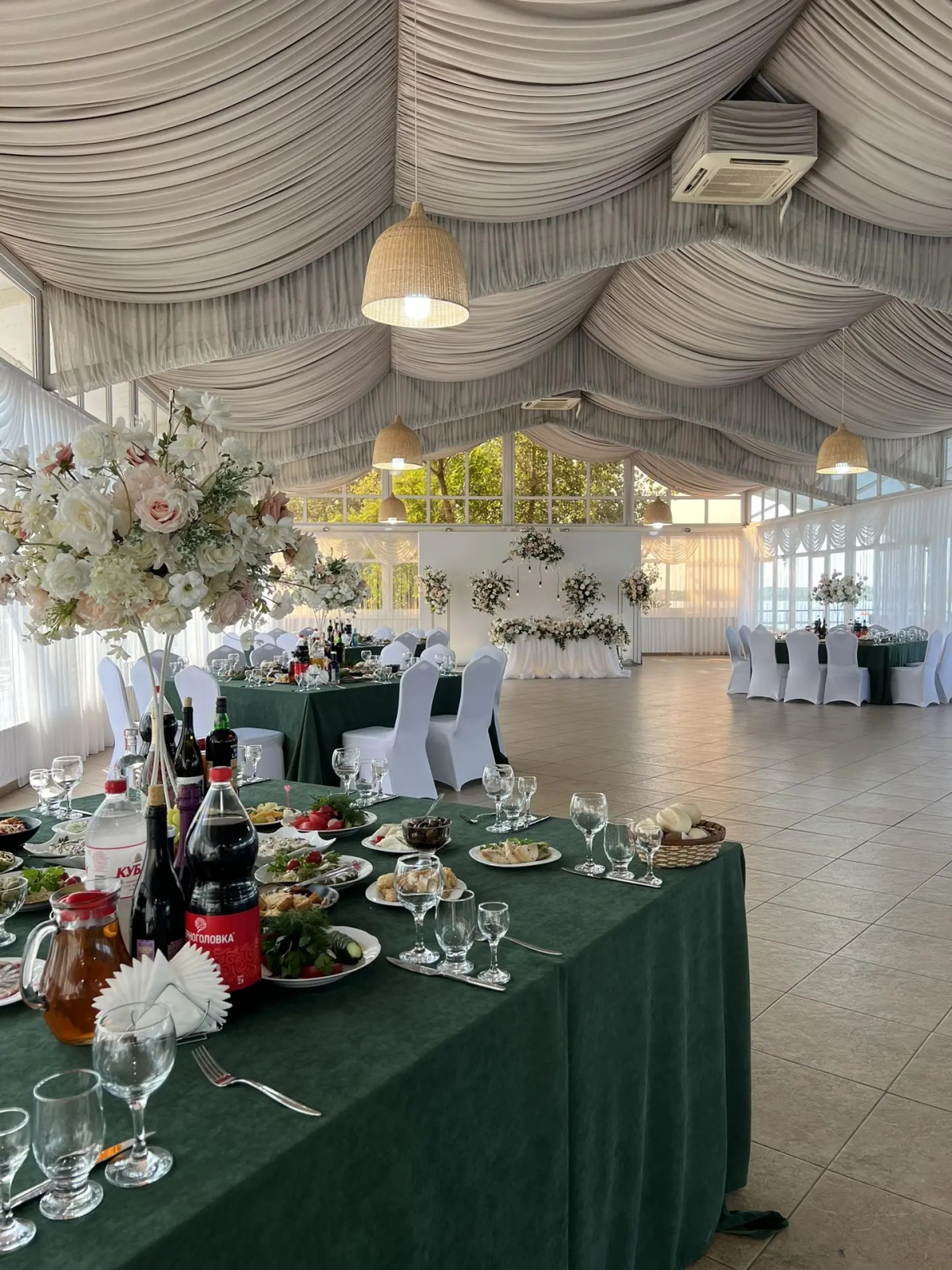 Ресторан расположен на берегу тихого Дона, вдали от шумного города, с потрясающими видами и ухоженной территорией. Ваше торжество пройдет в атмосфере спокойствия и красоты!
