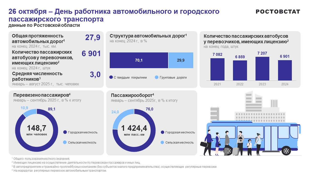 Ростовстат представил статистику к Дню работника автомобильного и городского пассажирского транспорта