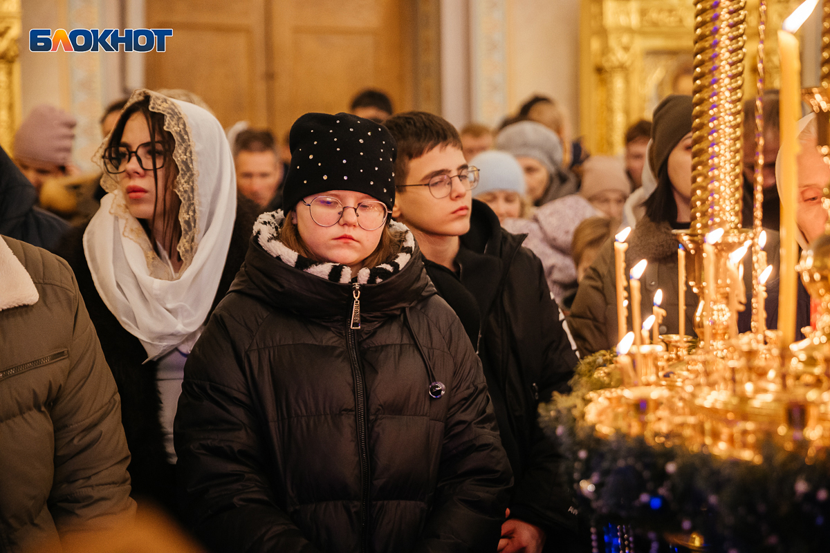 Празднование в кафедральном соборе стало настоящим событием для Волгодонска. Собор наполнился теплом свечей, тихими молитвами и мелодичными рождественскими песнопениями. Верующие пришли отдать дань уважения вековым традициям и разделить радость рождения Спасителя. Особенно трогательным было видеть множество семей с детьми, которые привнесли в храм атмосферу искренности и светлой надежды.