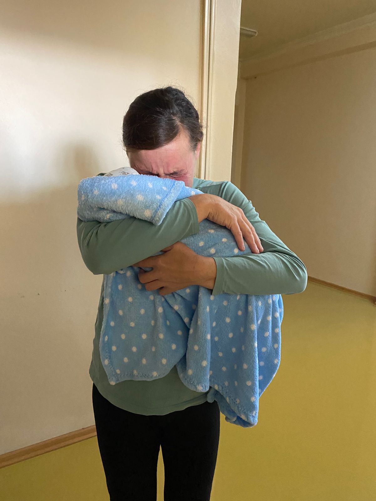 Когда Юля берет на руки Артемку, она плачет.