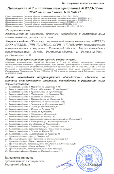 ООО «ЛЕВЕЛ», лицензия № 8/МЭ-12