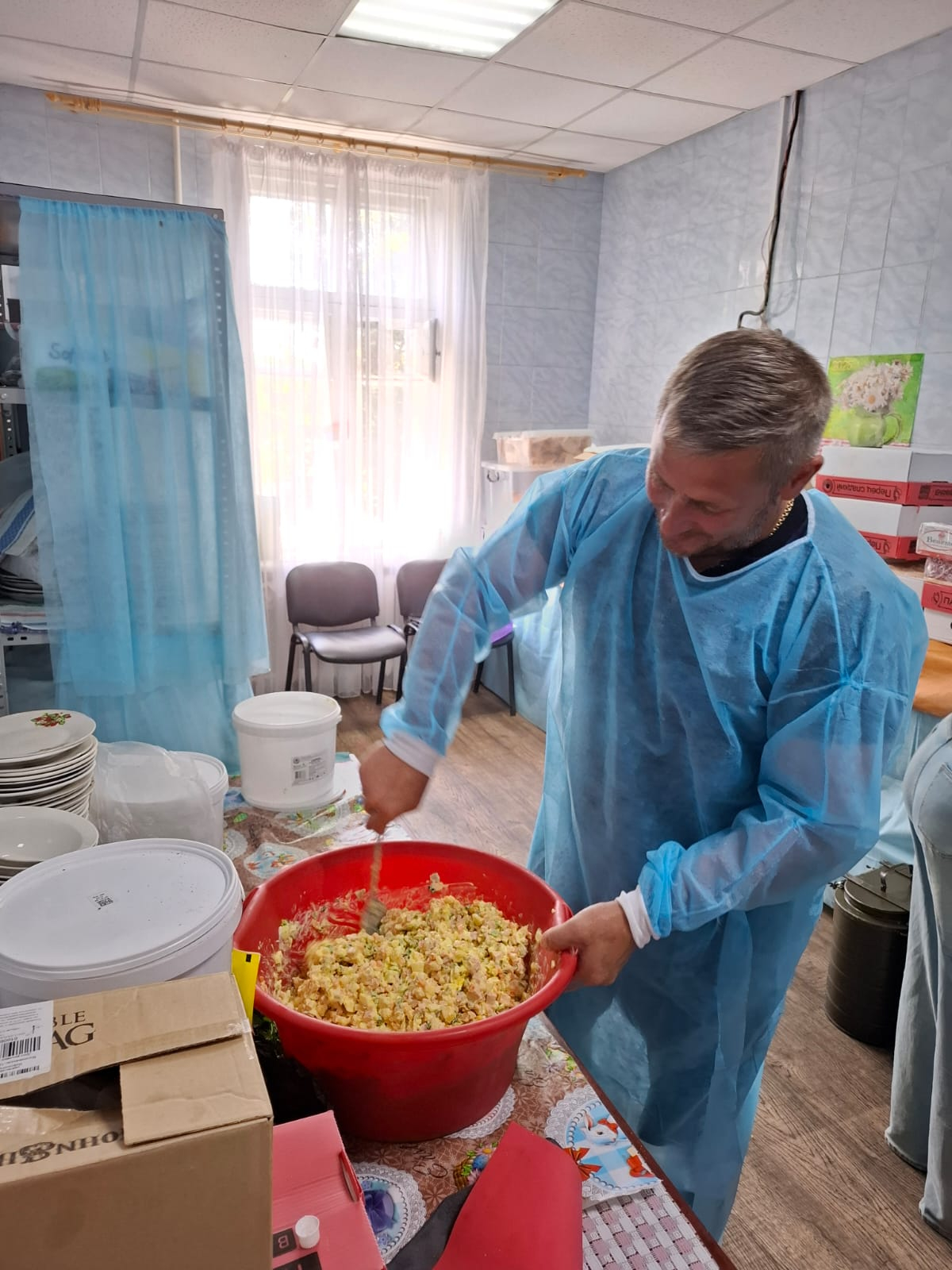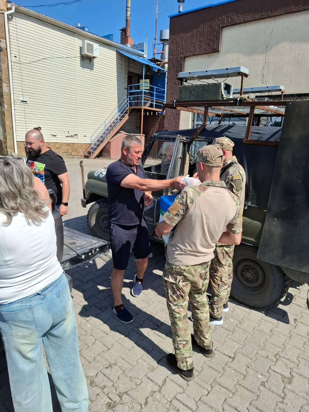 Сергей Апанович не только предоставил транспорт и оплатил топливо, но и лично участвовал в поездке, погрузке и разгрузке груза, а так же помогал в приготовлении еды для бойцов, которые с радостью приняли домашние угощения, такие как салат «Оливье», котлеты, пирожки, пироги и соленья.