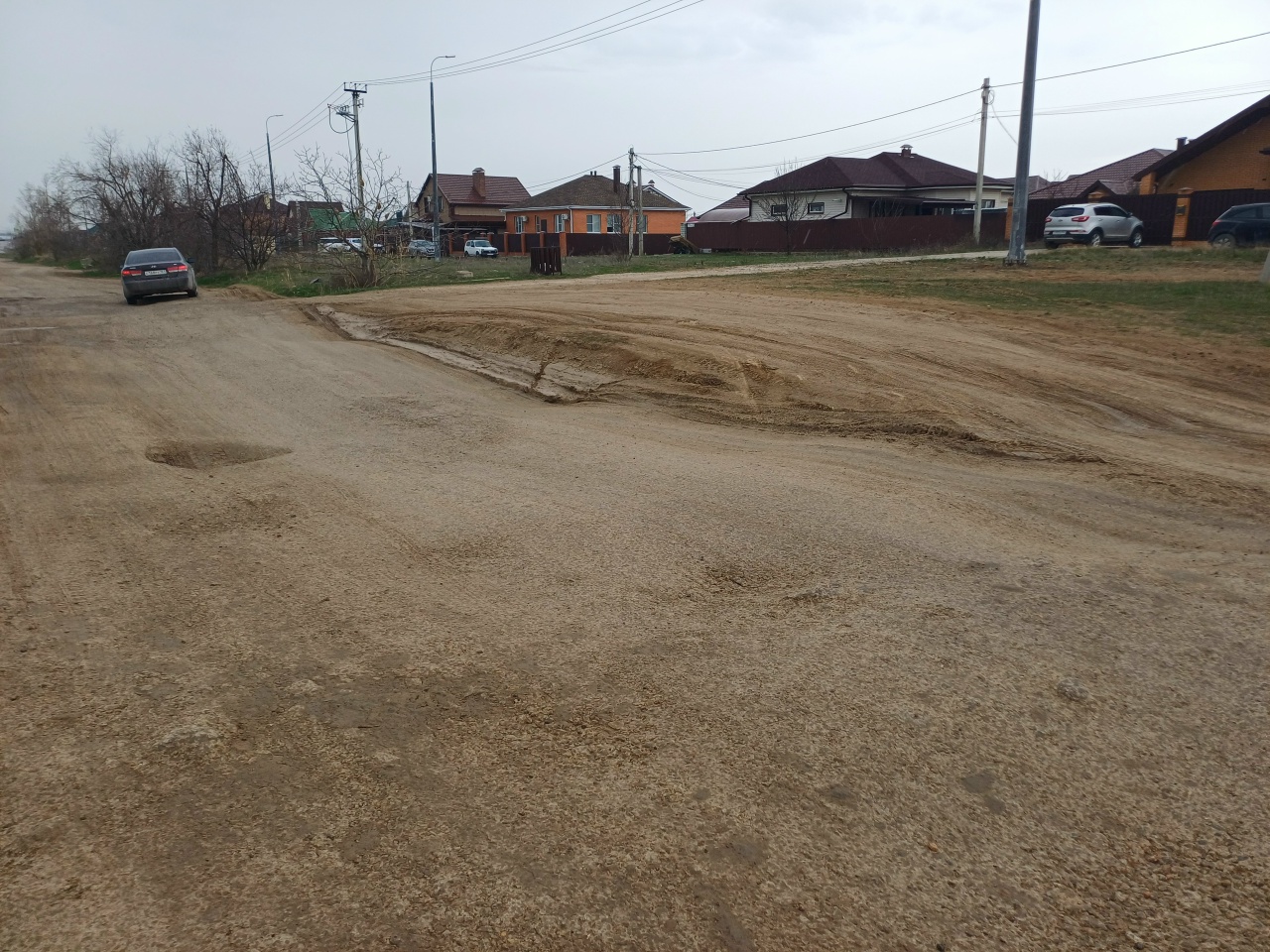 Как поясняет горожанка, на проспекте Лазоревом (от ул. Энтузиастов до ул. К. Маркса) осенью 2023 года велись работы по прокладке линии электропитания и установке опор освещения. На перекрестке пр. Лазоревый и пр. Курчатова – этот участок дороги жители отсыпали щебнем за свой счет. А во время работ подрядчик основательно разбил дорогу своей тяжелой техникой.