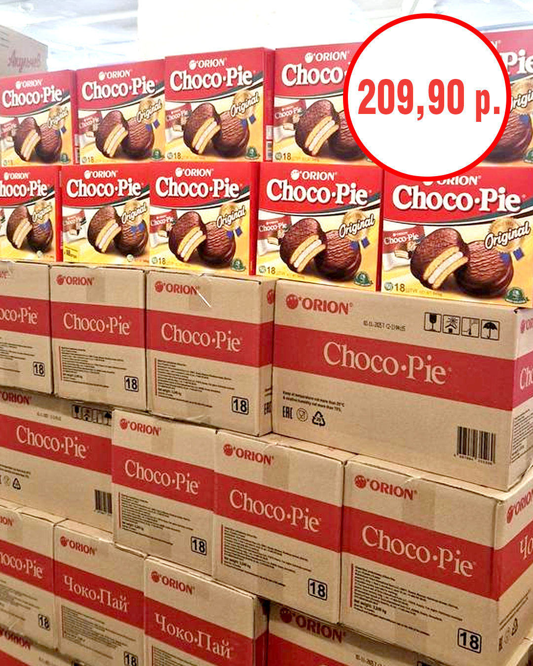 7. Пирожное «Чоко пай Орио» (18шт) -209,90 рублей;