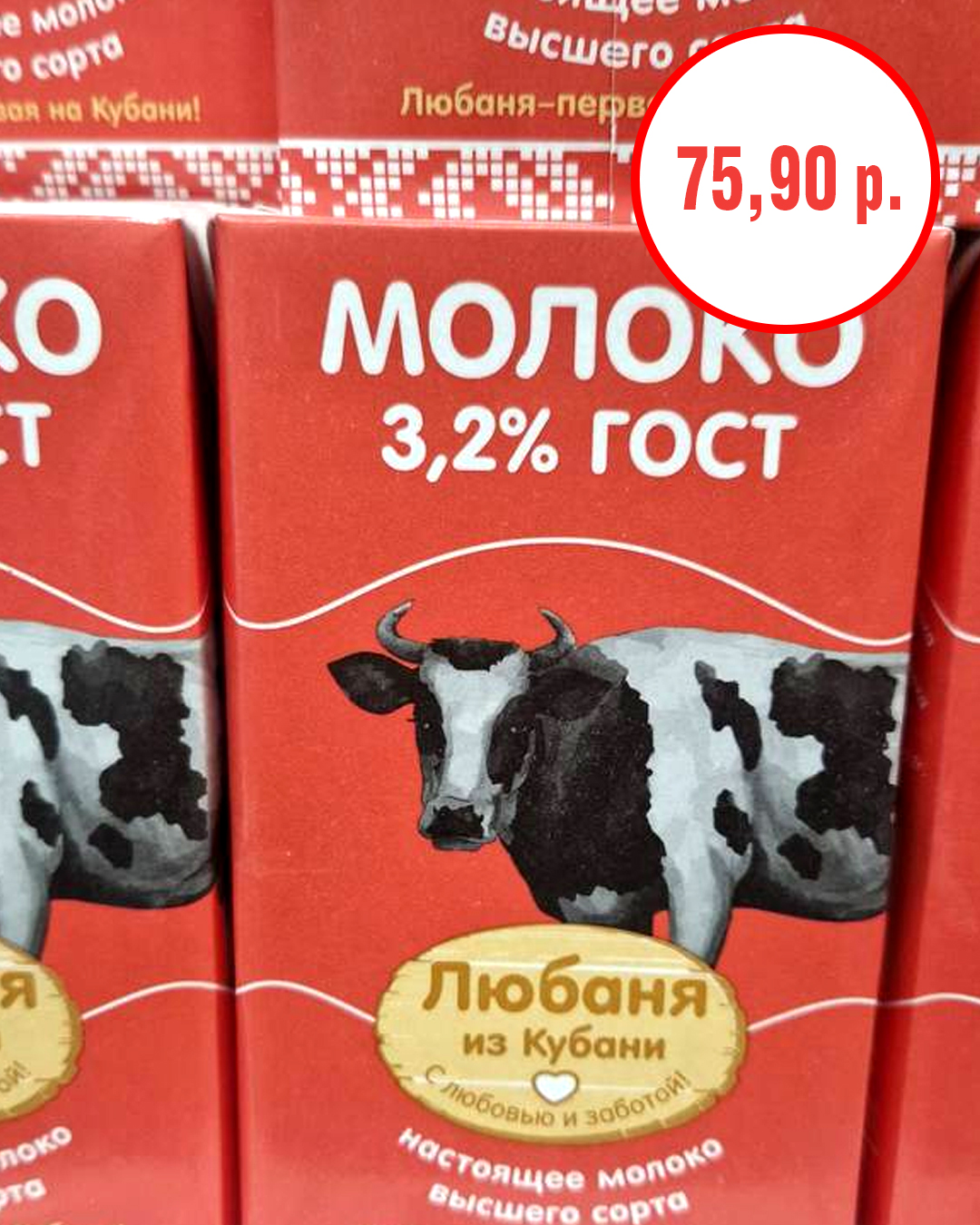 2. Молоко «Любаня из Кубани» - 75,90 рублей;