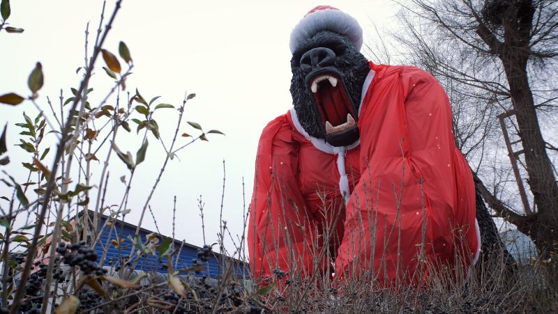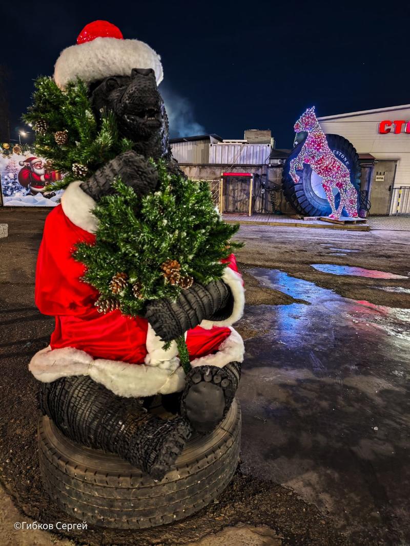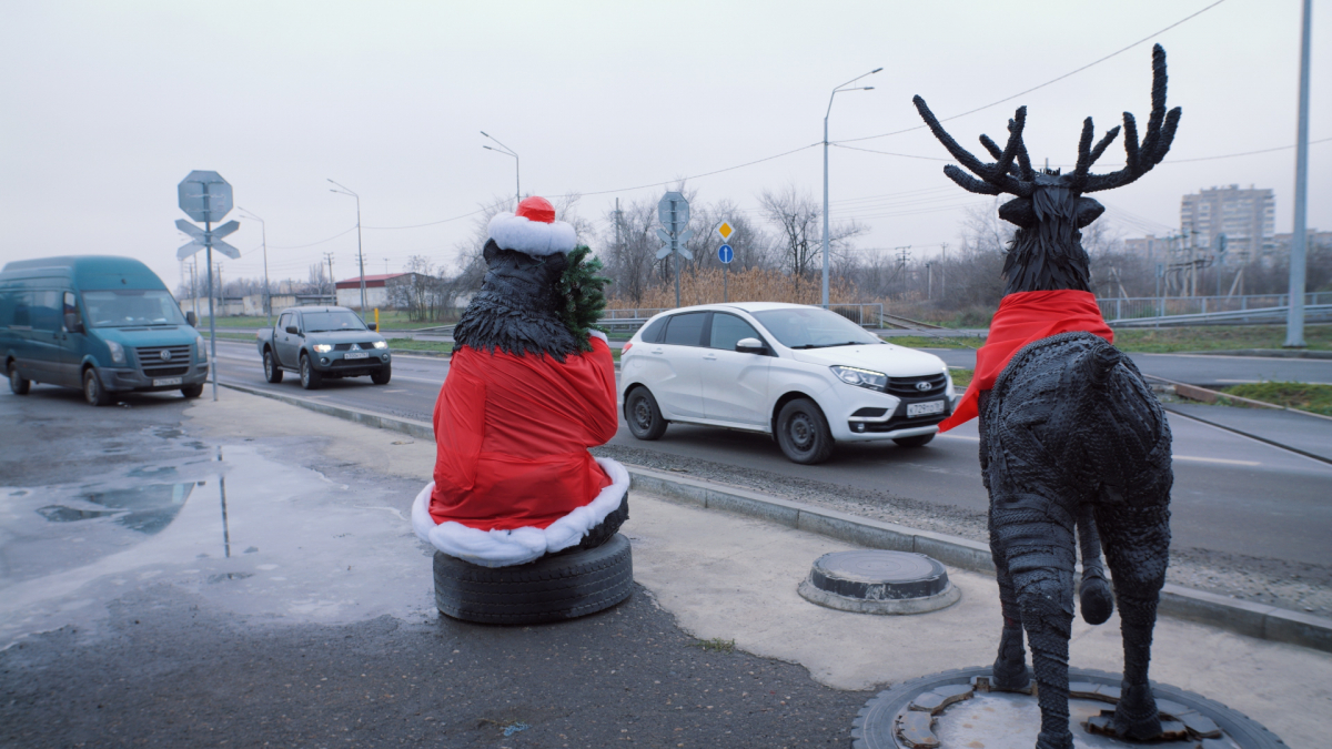 Раньше всех в праздничный новогодний костюм облачился еще один персонаж Вячеслава – пятиметровая горилла. Скульптуру из шин невозможно не заметить – она встречает проезжающих автомобилистов при въезде в город со стороны Цимлянского моста.