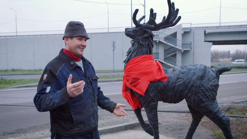- Самая первая моя фигура – это олень. Он появился более трех лет назад. Изначально олененок был укутан в коричневый мех, сзади него стояли настоящие сани, а в них - мешок с подаркам. Праздники прошли, олень мех скинул и облачился в покрышки от велосипедов, - рассказывает шиномонтажник.