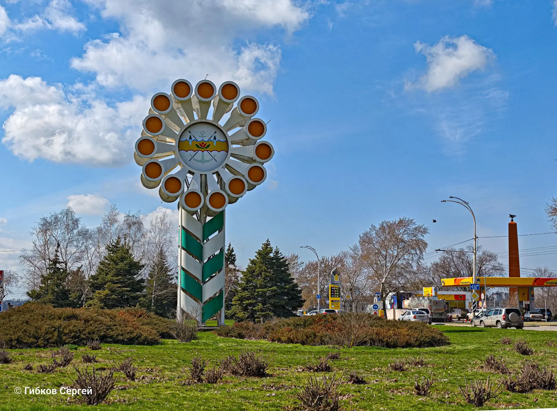 Вот она, стела «Ромашка», символ нового города, встречающая нас своим весенним цветением. Окруженная буйной зеленью, она кажется живой, словно сама впустила в свое сердце тепло апреля.